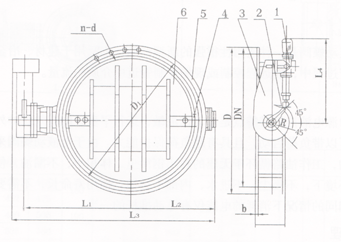電液動蝶閥以電液推桿作動力源,通過雙向齒輪泵輪出壓力油,經(jīng)油路集成塊的控制送至油缸,實現(xiàn)活塞桿往復(fù)運動,同時通過曲柄轉(zhuǎn)動閥軸、閥板作90°范圍旋轉(zhuǎn),達(dá)到調(diào)節(jié)流量的目的。